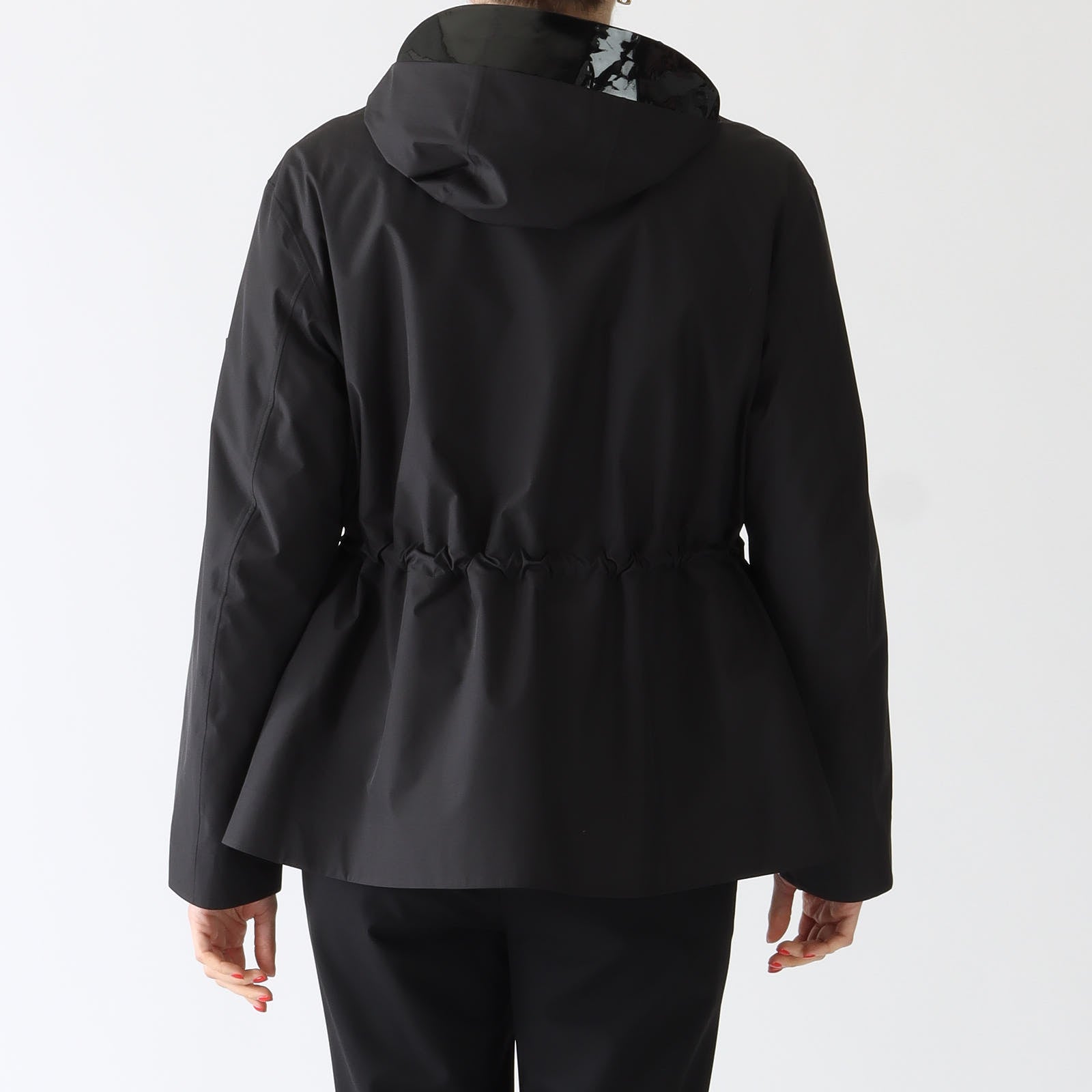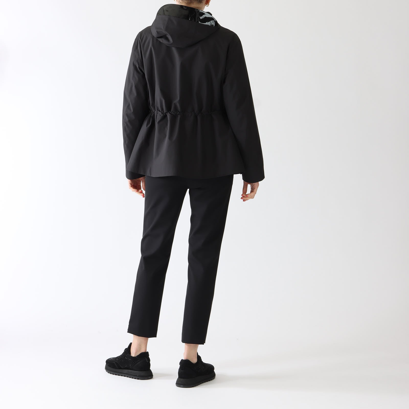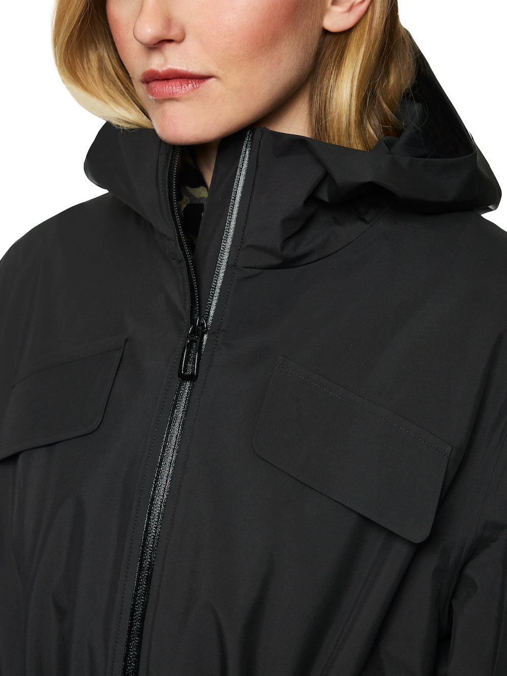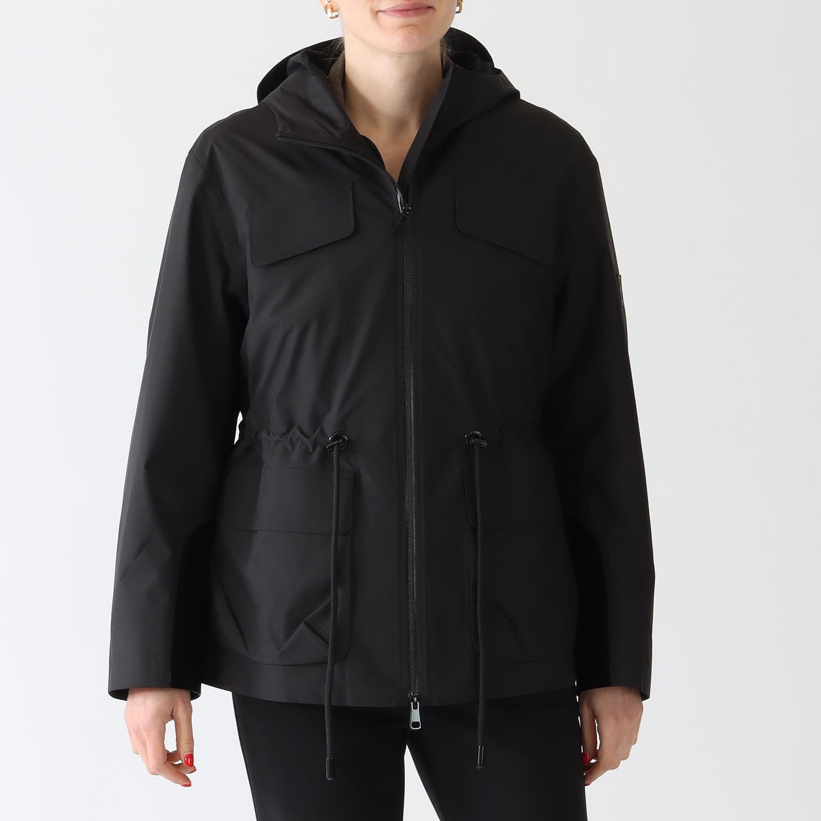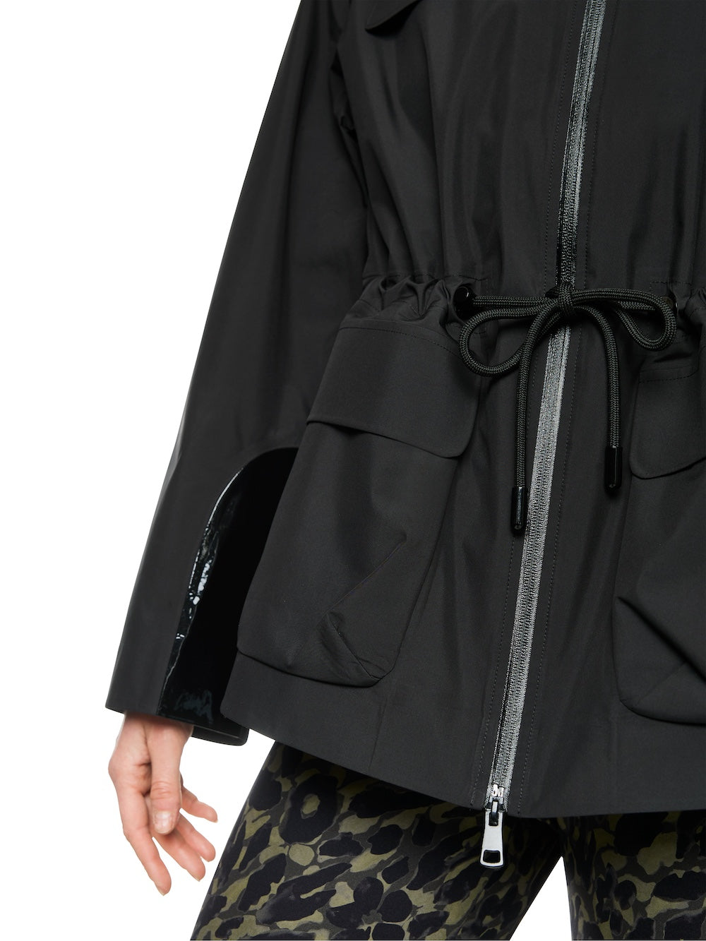 Your new staple coat is the Black Hooded Utility Jacket With Drawstring by Marc Cain Sports. This utility-style jacket has a high collar with a peaked hood, large pockets and a zip fastener. Its straight cut can be adjusted at the waist with a drawstring. Its highlight is the removable softshell inner jacket in a contrasting colour – making it ideal for all weather conditions.