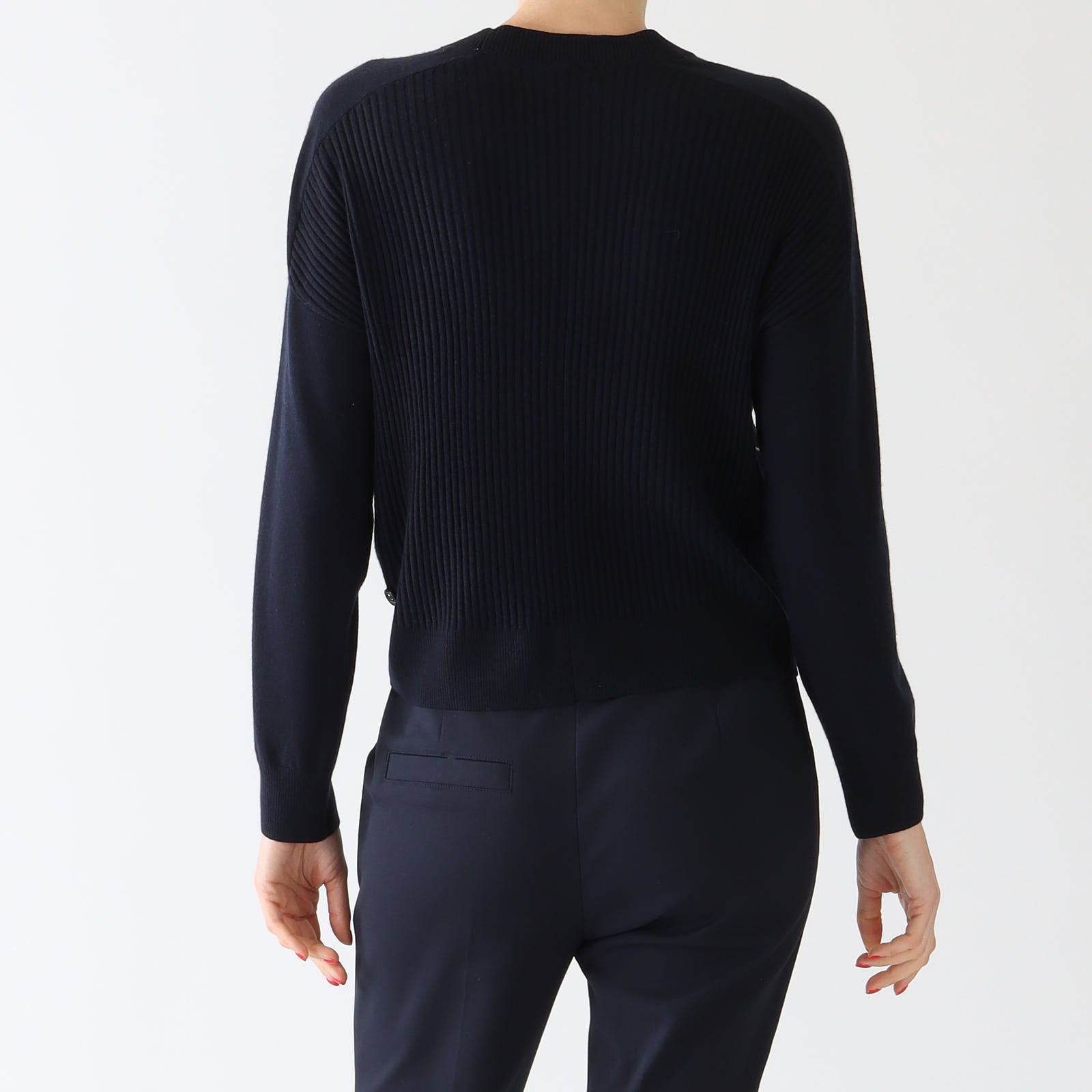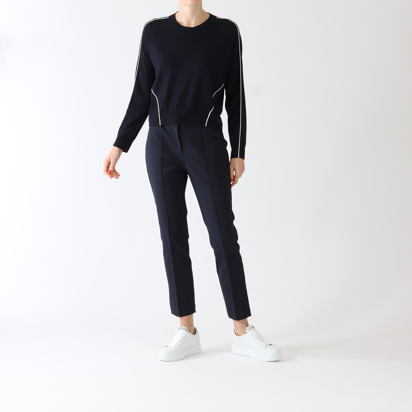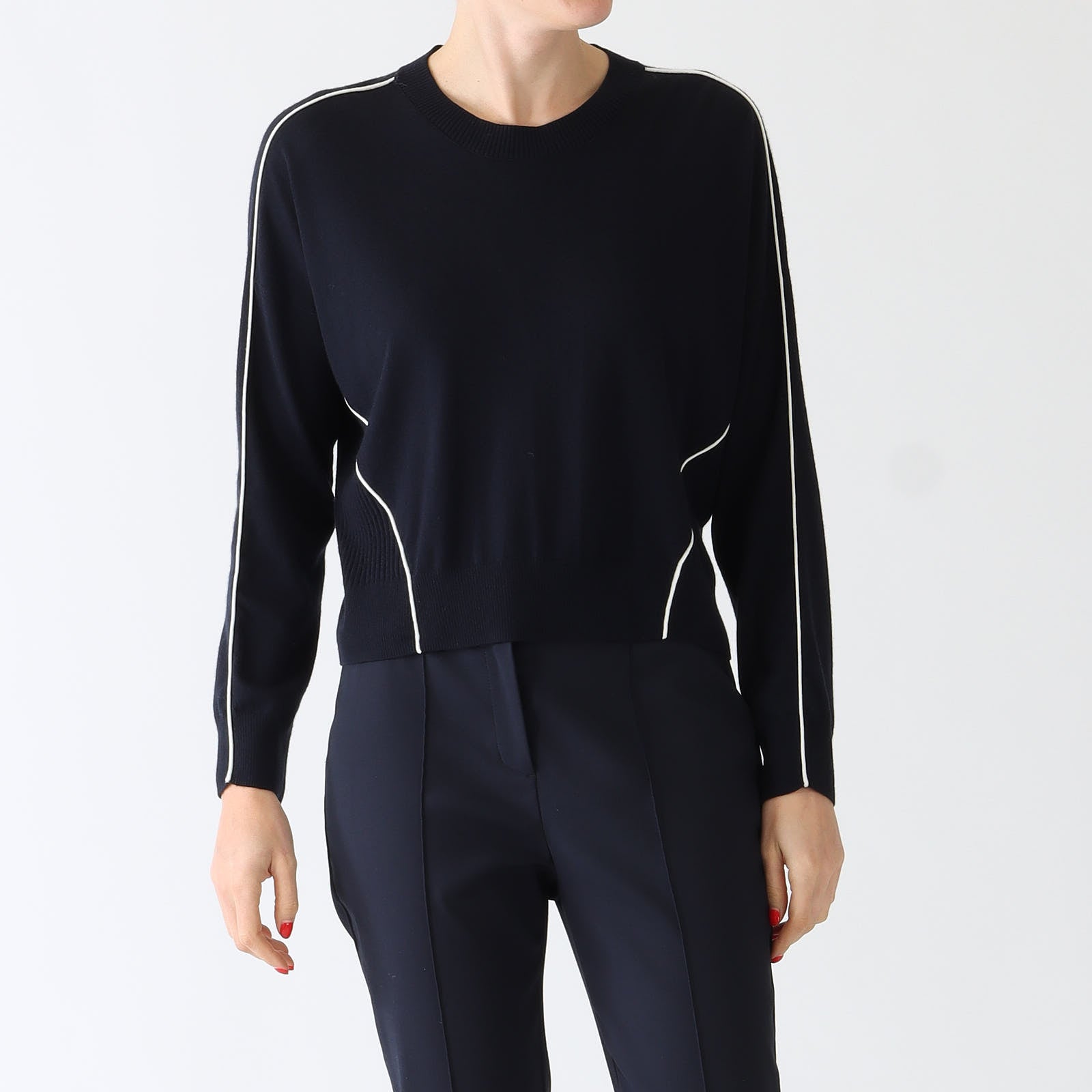 Navy Wool Blend Piped Sweater