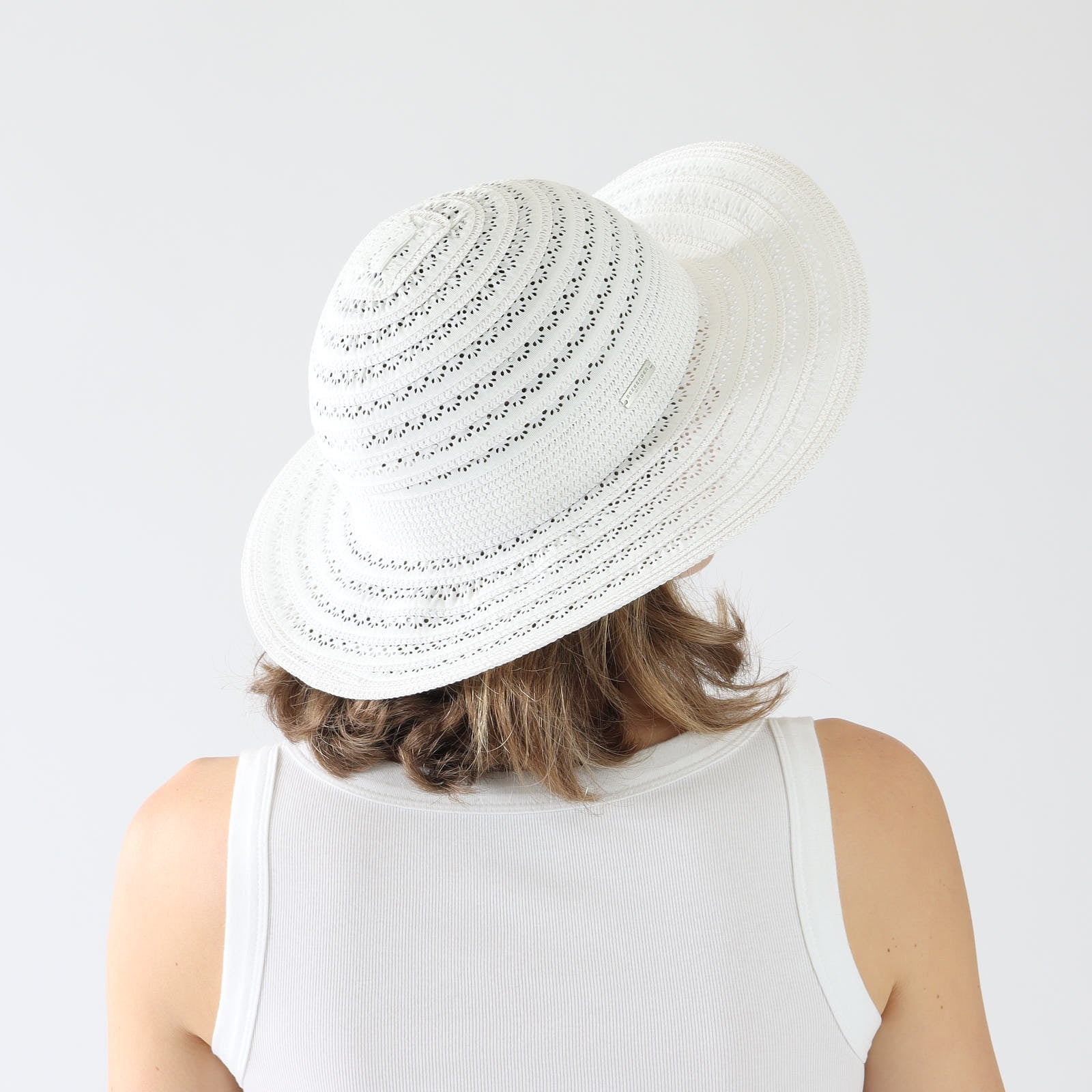 The White Ribbon & Braid Floppy Sun Hat by Seeberger is a chic flapper that impresses with its unmistakable lightness. The combination of an openwork grosgrain ribbon and a paper straw trim gives this hat a particularly airy, light and lively look with a feminine finish.